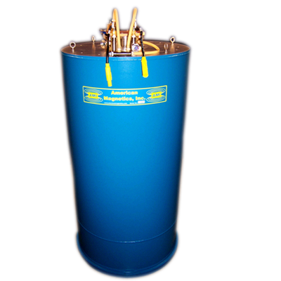 Bottom loading magnet systems are typically used when a small diameter (e.g., 8 inches or less), top-loading sample insert is to be used and the magnet is relatively large. The magnet is installed from the bottom of the dewar through a series of bolted flanges and installed on the bottom of liquid helium reservoir. This allows the dewar neck diameter to be small, thus minimizing the liquid helium consumption. Bottom loading systems can be used with solenoids, split coils, gradient coils, etc.