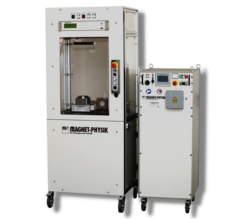 Handling systems are used for partial automation of magnetization for manual workstations. The integration of the magnetizing components allows a comfortable and safe magnetization of your products. During the process, the door of the handling system is kept firmly closed to ensure a high level of safety. The system can only be opened again after the process has been completed.